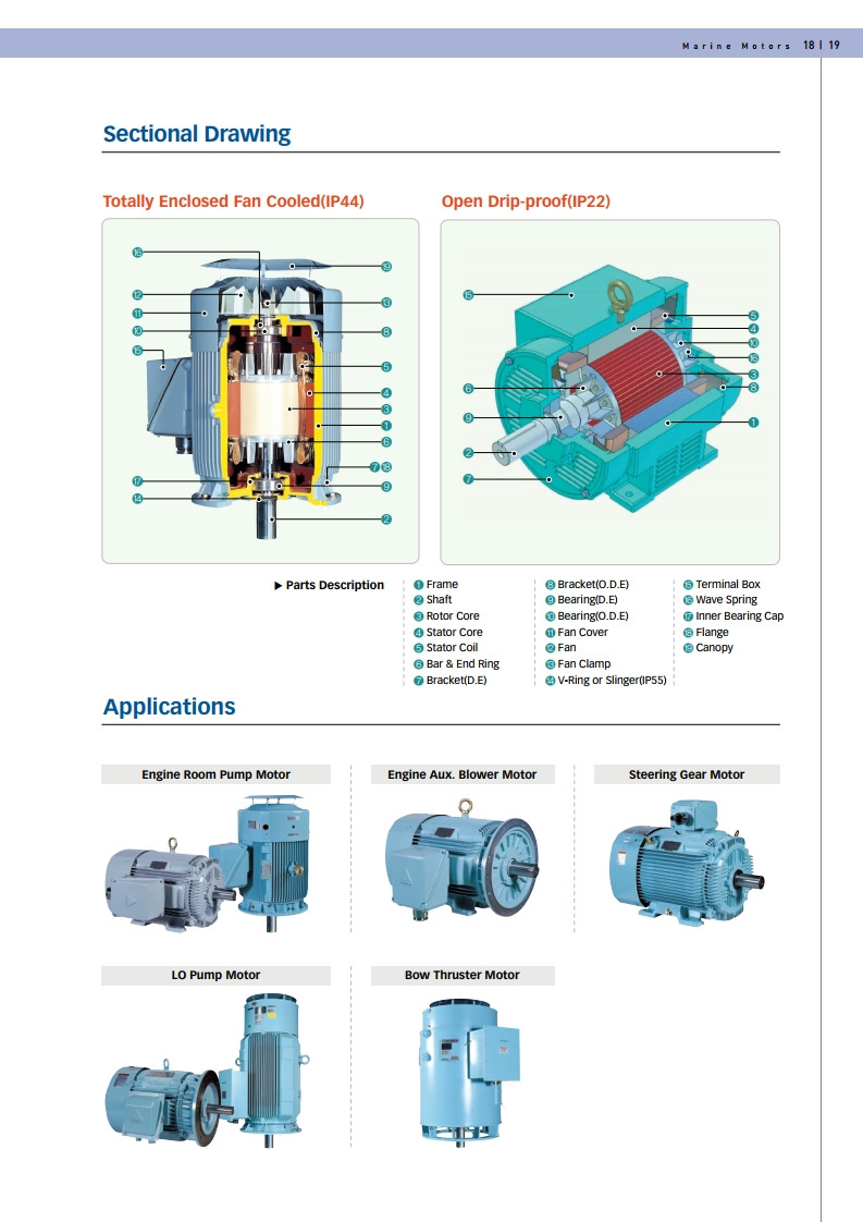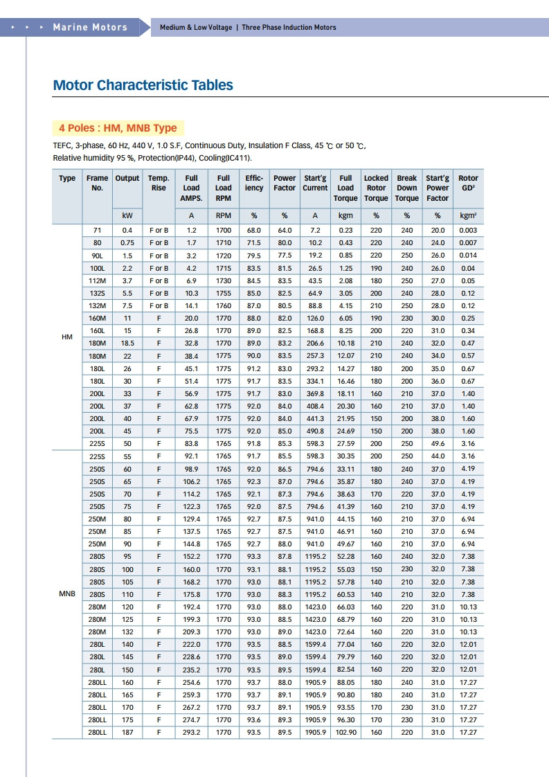 Marine/Land motor (0.75KW - 160KW / 1HP - 214HP, 380/440V, 50/60HZ, 2/4/6/8P)